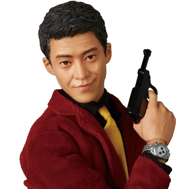 8/20新登場的魯邦三世真人電影版,飾演魯邦的主角小栗旬將被立體化!由MEDICOM TOYS 的RAH系列推出,將小栗旬詮釋的魯邦神情相當傳神的再現,紅色外套搭配經典的黑色襯衫、皮褲,以及黃色領帶與配槍,都很忠實原設定製作。從官圖來看動作擺起來也重現電影劇照裡的場景,特別是頭雕絕對有90分的水準,十分推薦給影迷入手!本作品高約30公分,日幣售價24800圓,預計2015年5月推出,提供給大家參考喔!