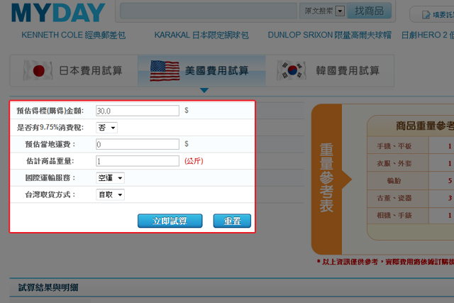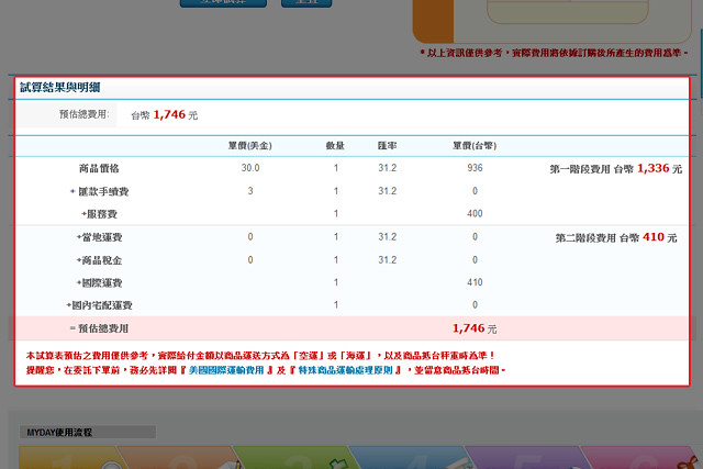 若是想知道購買完大概需要花費多少錢,各位玩具人可以先點選「費用試算」的按鈕,並填寫相關的資訊後,就可以知道最後從國外購買回來的金額了!小編這次絕對是大失血啊!不過為了可以購買到SDCC 的會場限定商品,小編還是頂的住。