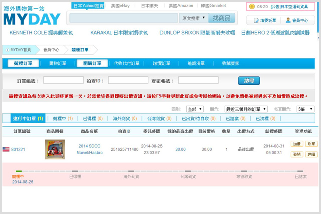 「委託單」送出之後,在網站幫你下標之後,就要開始進行最後一個步驟了!沒錯,就是最簡單的開開心心等MYDAY 網站通知到貨囉!