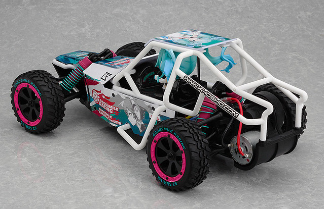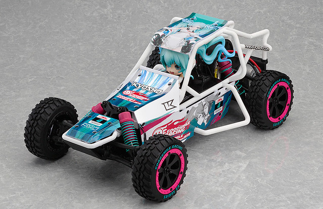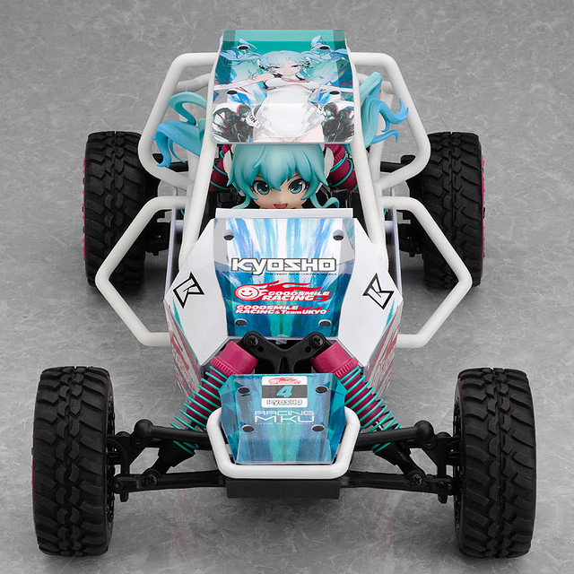 這一款作品內含了一隻專為聯名所製作的賽車初音 2014 Ver.,而賽車則是採用「Kyosho」所推出,容易組裝、入門而獲得最高評價的遙控賽車入門款「1/10 EP 2WD Sand Master」;整台車體使用了初音主題的裝飾貼紙,並且為了讓玩偶搭乘,而重新調整了車體框架與防滾籠的造型,除此之外,還有特殊配色的車胎輪框、控制器...等,完整充實的設計絕對是值得入手收藏的特殊款式!