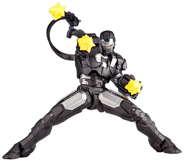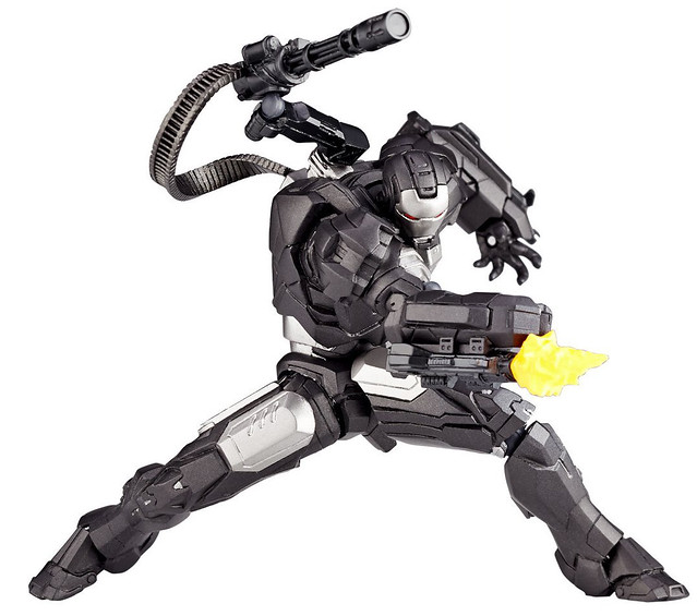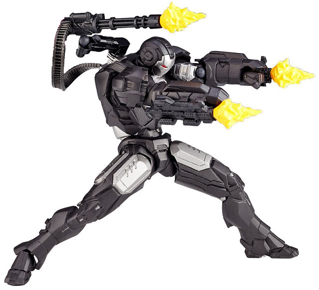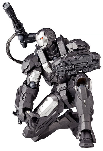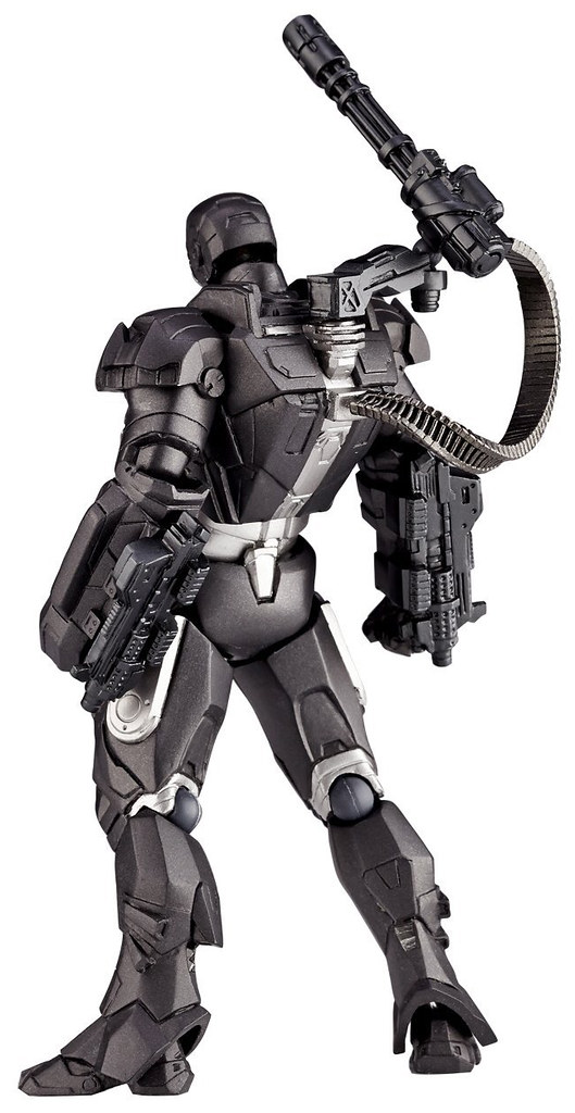 這次迷你輪轉可動系列所推出的「戰爭機器」,頭部採用了新的球狀關節,擁有比以往更高度自由的可動範圍;除此之外,肩膀上的格林機槍採用了球狀關節設計,可依照姿勢自由活動調整角度,並且還附屬了閃光的特效零件,用來重現手部機槍與格林機槍的射擊模樣。全身重武裝、充滿份量感的重裝甲、重裝備軀體可靈活活動,可說是完全不輸給主角鋼鐵人的強烈存在!