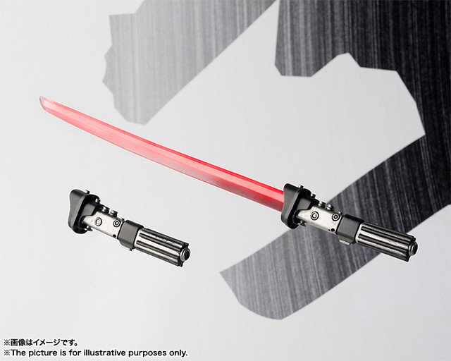 “侍大將『黑武士達斯維德』”這將附有左右各三種不同的替換手部零件,以及開/閉光劍的兩種替換零件,可呈現拔刀或收於腰間的造型。