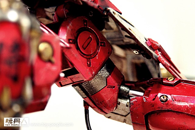 ▼ 手臂的仿油壓系統會隨著手臂的彎曲伸縮,而且不同的部位與零件也施予不同程度的舊化,細膩地將這個身經百戰的戰士刻畫出來。
