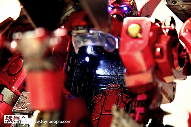 ▼ 兩側巨大的肩甲造型相當棒!而且中間紅寶石狀的零件採用了透明零件搭配LED 發光功能~ 還能隱約地看到底部的構造,真是太過癮了!