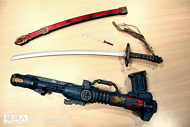 ▼ 最後我們來看看武器的部分吧!~ 有點小可惜的地方是小編沒能收到台灣限定版的VIP 武器"脅差"。與駕駛員的武器一比就知道這有多巨大啦!~ 除此之外,刀柄尾端的布條也施以了油污、舊化,更加增添了身經百戰的氣息。