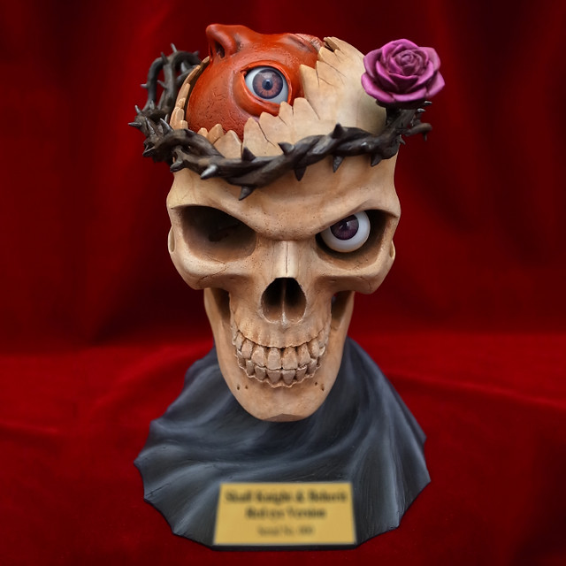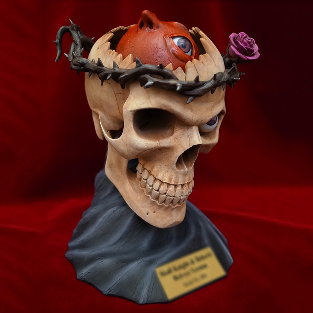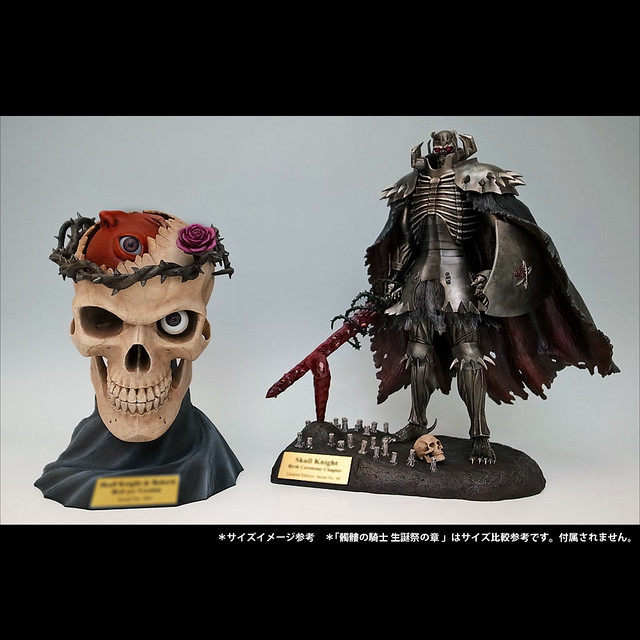 以高級蒐藏藝術形式推出許多硬派漫畫蒐藏品的謙信株式會社,近日推出了烙印勇士新蒐藏藝品「骷髏騎士與貝黑利德(Skull Knight & Beherit)」。取材自漫畫第9集骷髏騎士初登場的插畫構圖,紫色的荊棘玫瑰、骷髏與赤紅的貝黑利德,構築了作者心中的世界象徵。本作品開發過程中一度被放棄,直到近日才重新完成推出,非常推薦給喜歡本漫畫的漫迷蒐藏。本作品高約19公分、寬12.5、深13.5公分,限定50體限定版售價48600日圓。也可加價5400日圓增加特殊的流血塗裝(9月10日截止)。預計年底出貨,提供給大家參考唷!