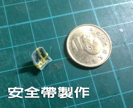 ↑ 安全帶用遮蓋膠帶及漆包線內的芯來製作