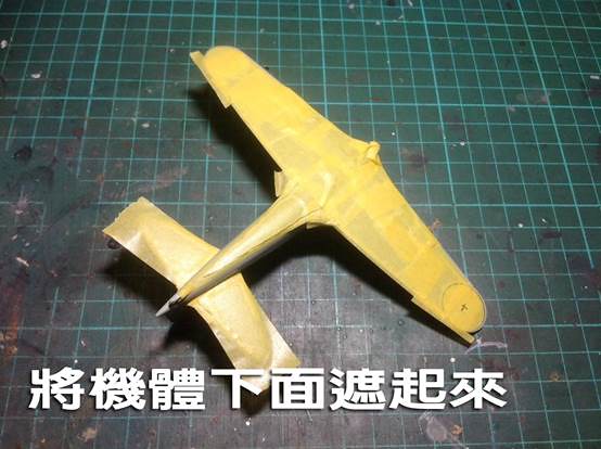 ↑ 再來將底部遮起來,後續噴機身色時,才不會噴到。