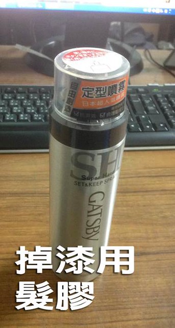 ↑ 這裡使用髮膠噴霧,目的是在後續要作出掉漆的效果,先在模型上噴上髮膠。