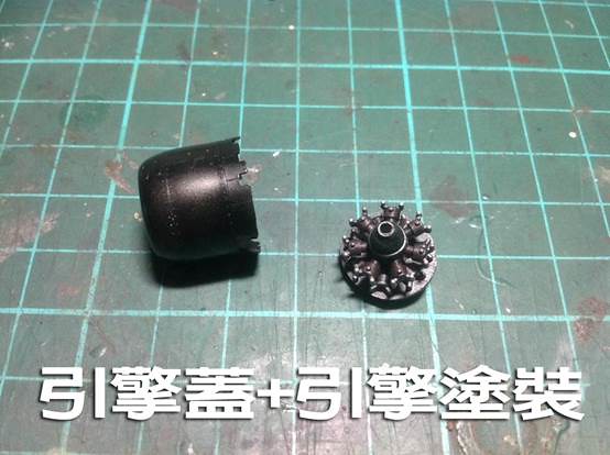 ↑ 引擎蓋的部分,先用銀色當底,在噴上消光黑,引擎則是黑色底後,再用銀色乾刷。