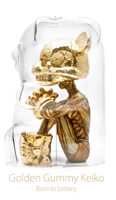 愚者樂園設計師 ALAN,由2002年與好友組成 boredom squeezer,繼後在 2007 年創立屬於自己風格的 Fools Paradise 愚者樂園,概念來自精身病患的幻想世界, 作品多以天馬行空的造型設計,愚者樂園想表達的就是苦悶生活中不能扮演的角色可以在幻想世界玩個樂透 ~這角色的名字是 Golden Gummy Keiko,是 Gummy Keiko 的一個金色得獎版本,Gummy keiko 是表達死亡的甜,糖衣後面的是一個以生命換取甜美的少女 Keiko。
