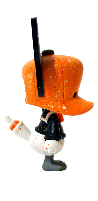 介紹 : 跑啊跑啊,CAP DUCK這次遇到了萬聖節,裝扮成南瓜人的他,應該可以繼續的躲開追殺生存下去。為生存下去而奮鬥的戰士!加油!CAP DUCK。本次SHON SIDE的CAP DUCK一樣採用純手工打造與搭配壓克力片的切割效果來呈現作品的立體感與設計感。