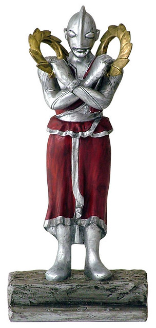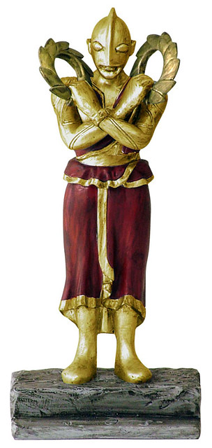 大人氣力霸王十二神將系列再推出新作!將超人打敗怪獸變成假想神話故事,為偉大的神蹟立像歌頌。作品中直立的超人力霸王(ウルトラマン)手持象徵絕技的神器:八つ裂き光輪(ウルトラスラッシュ),以守護之姿莊嚴站立著。左右兩邊樹立著怪獸造型細緻構築而成的曼荼羅塔,供奉著象徵超人力霸王的光之寶珠,神話般的存在讓人不禁肅然起敬啊!本作品力霸王與曼荼羅雙塔可分拆購買,而且分成金色與銀色兩款,預計2014年10月下旬推出,提供大家參考喔!