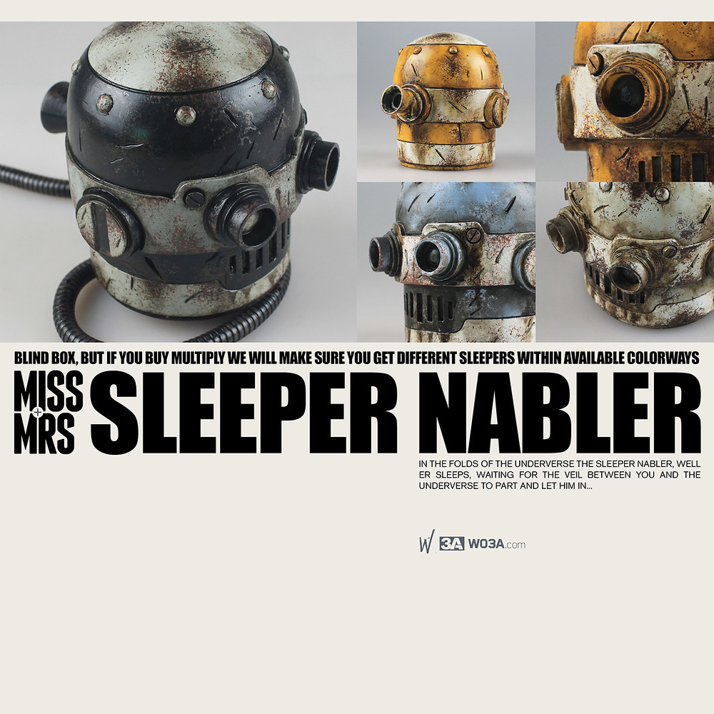 最好搭的人偶的商品來了啊!threeA 公司推出的NABLER 機器人頭系列的作品一直是小編拿來搭配人偶最好的夥伴之一。而在明天2014 年09 月10 日,threeA 公司將推出全新的兩種造型的「NABLER」機器人頭作品:SLEEPER NABLER 與CLASSIC NABLER V.2 版本。目前公佈的消息是SLEEPER NABLER 將有黃、藍、黑、白四種不同顏色隨機混入的兩個眼睛的機器人頭造型!最酷的地方是在機器人頭的底部還有外接式的管路喔!