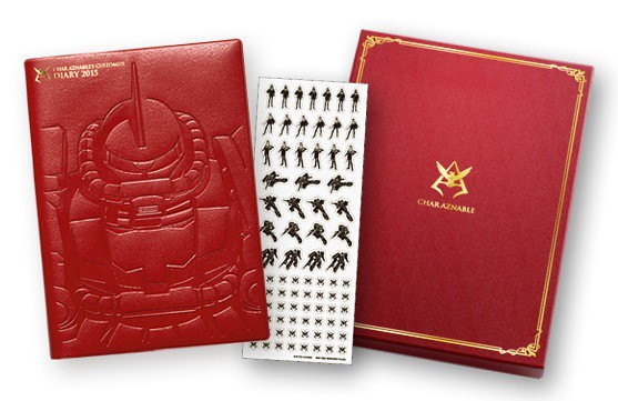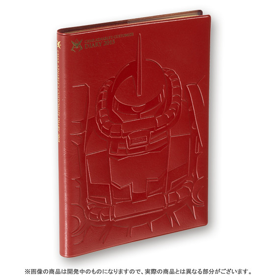 來自機動戦士ガンダム誕生35週年記念商品「シャア専用手帳2015」夏亞專用手帳2015,這款夏亞專用手帳2015特別獻給所有鋼彈粉絲們,「夏亞專用筆記本2015」是特殊規格的產品,以紀念“機動戰士鋼彈”誕生35週年,壓印在封面上的是夏亞·阿茲納布爾的愛機“薩克II”圖案,筆記本的側面也特地使用金色印刷。