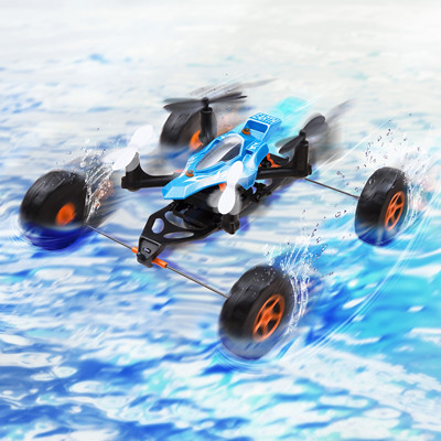 「水陸空RC」空中與陸地上的操作完全相同,在陸地行走時只需一顆按鈕就能浮空。除此之外,操作內建了限制高度與滯空時間的「初學者模式」,以及高手所使用的「職業模式」,可供訓練來靈活操作方式。每充電40分鐘即可在地上行走7分鐘,或是空中飛行5分鐘,能夠操作的最大距離為10公尺。