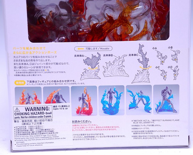 盒子背面,基本上一組特效有多種玩法,除了最基本的A+B+C的三個獨立本體之外還附贈了可以外掛在手上的特效零件,本體A和本體C的火焰特效是可以轉動變換角度位置的。
