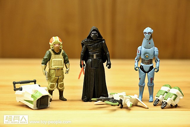 ▼ 《原力覺醒》的大反派、新的西斯教派團體「Knights of Ren」的“Kylo Ren”,以及兩位《原力覺醒》的新角色,隸屬於反抗軍的Goss Toowers 與機器人PZ-4CO