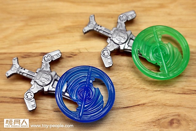 ▼ 投擲光劍攻擊可說是絕地武士強大的必殺攻擊之一。這個組合一共附有兩款發射器,並有象徵安納金的藍色光劍,與尤達大師綠色光劍的特殊飛盤。遊戲時就用光劍來射倒大量的暴風兵吧~:P