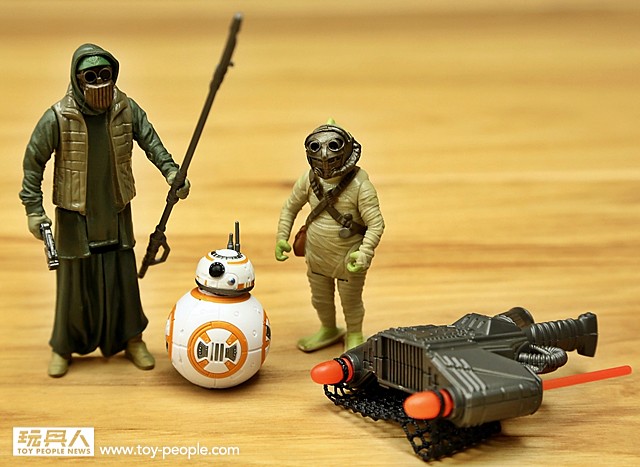 ▼ 《原力覺醒》的新角色組合!專門捕獵機器人、靠著各種機械廢鐵維生的兩種全新外星人,以及本集的人氣機器人角色BB-8!特殊的武裝能夠將網子發射出去,重現捕獲BB-8的場景?