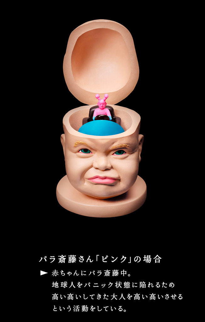 由Takara Tomy 轉蛋事業部「T-ARTS」與日本廣告公司「電通テック」(Dentsu Tec)所合作的詭異、爆笑轉蛋品牌『熊貓之穴』,繼大好評的『自由過頭女神』、『GREEN GREEN ARMY』之後,再度推出了最新作品『寄生齊藤(暫時翻譯)』!(パラ斎藤さん)