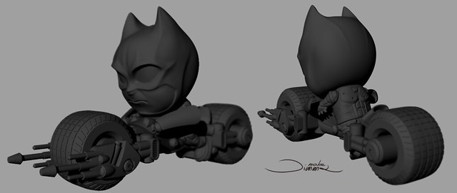 繪製暗黑小蝙蝠當然跑不掉那台帥氣的摩托車啦!! 此為3D設計圖,吉米稍微的簡化製作了一下,車體可轉動活動,重點在於如何把現有玩具放上車輛為設計考量重點,車體使用工業設計軟體Rhino繪製!