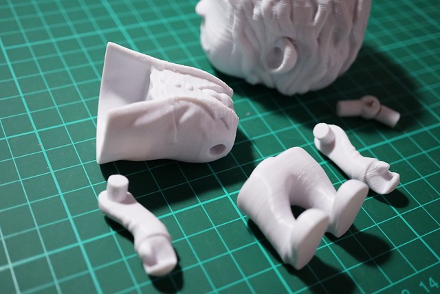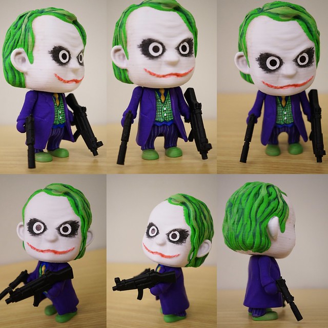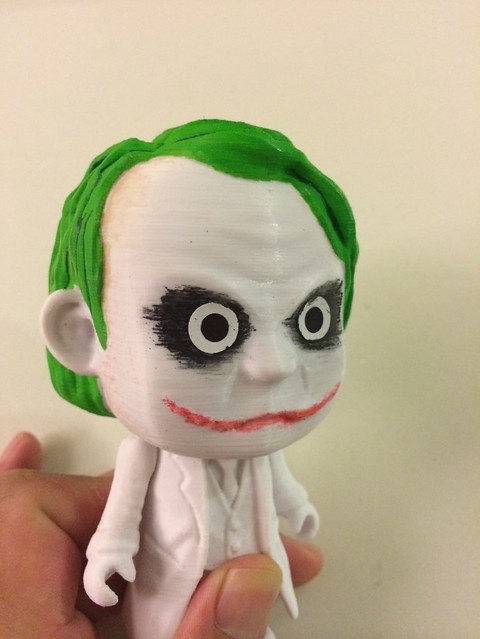 3D列印的零件出爐,透過微距鏡頭我們可以清楚看到表面其實滿多細紋,這是FDM列表機的特性,一層一層的堆疊成型出我們3D中的造型,因此一層的細緻度幾乎決定了你模型能表現出來的最小特徵,這個小丑玩偶使用ABS材料印製,大概耗時12小時使用約100公克左右材料成本大概60元台幣左右! 電費另計…