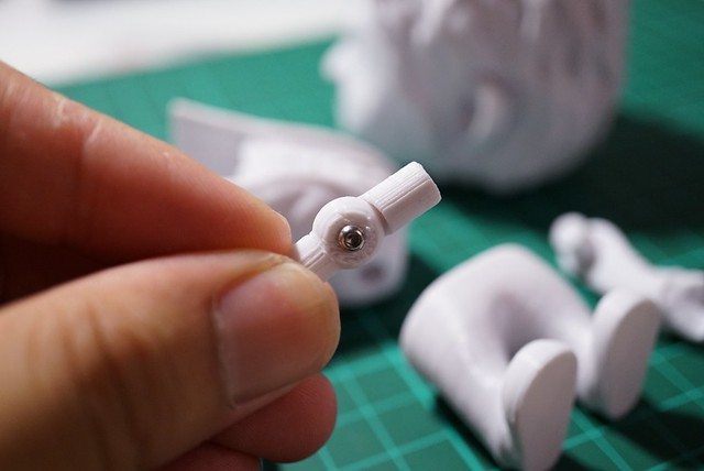 BIGHead Q系列的球形關節特寫,使用一顆內六腳M2_304不鏽鋼微型螺絲當轉軸,避免玩久了鬆脫垂頭!成本頗高2塊錢>