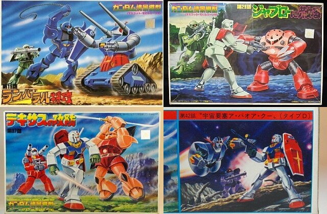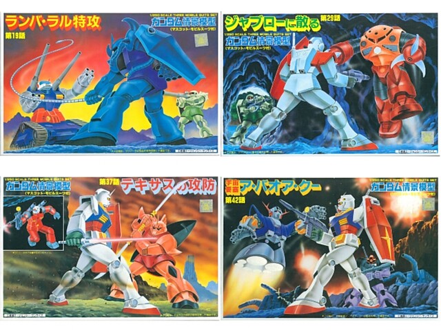 ▼ 1981 年7 月推出的1/250 鋼彈情景模型系列,共有四個場景,具體而微地表現出初代鋼彈動畫中的名場面。