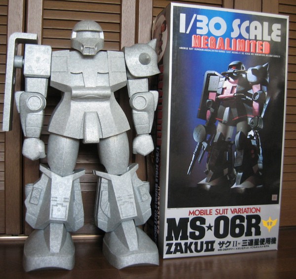 ▼ 1983 年11 月推出的MS-06R 黑色三連星專用高機動薩克,比例為1/30,組裝起來足足有60 公分那麼高。妙的是,材質居然是使用保麗龍,而且整個系列只有唯一一組,再也沒有推出過其它機體,算是夢幻中的夢幻逸品啊~~~