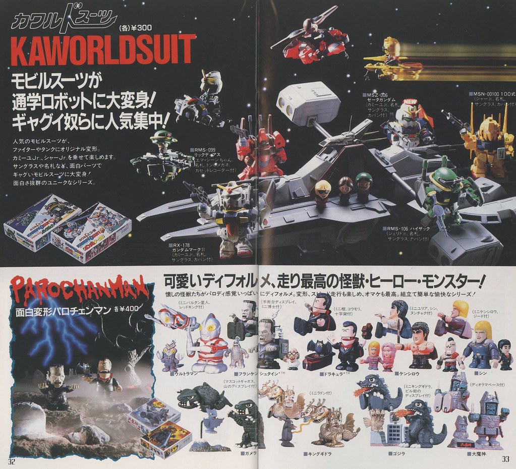 1985 年的KaWorldSuit(カワルドスーツ)系列,除了SD 可愛造型、促咪的變形機制,最重要的是加了風格化的表現,背書包、戴墨鏡,可以變形為飛行載具上學去,為後來的BB 戰士系列打下了基礎。