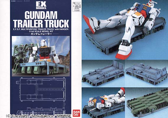 順著LM 系列的概念往下發展,非主流機體、簡化零件、限量生產。於是,接下來有了EX Model 系列的問世。2001 年推出的EX Model 系列將重點放在船艦載具上,第一彈推出的便是初代鋼彈第一話中登場的鋼彈拖車。另外還有1/144的馬拉賽戰車、核心戰機、鋼培利運輸機、梅比烏斯零式戰機、空中霸者、MA Exass 戰機等,簡直是經典名機大集合。