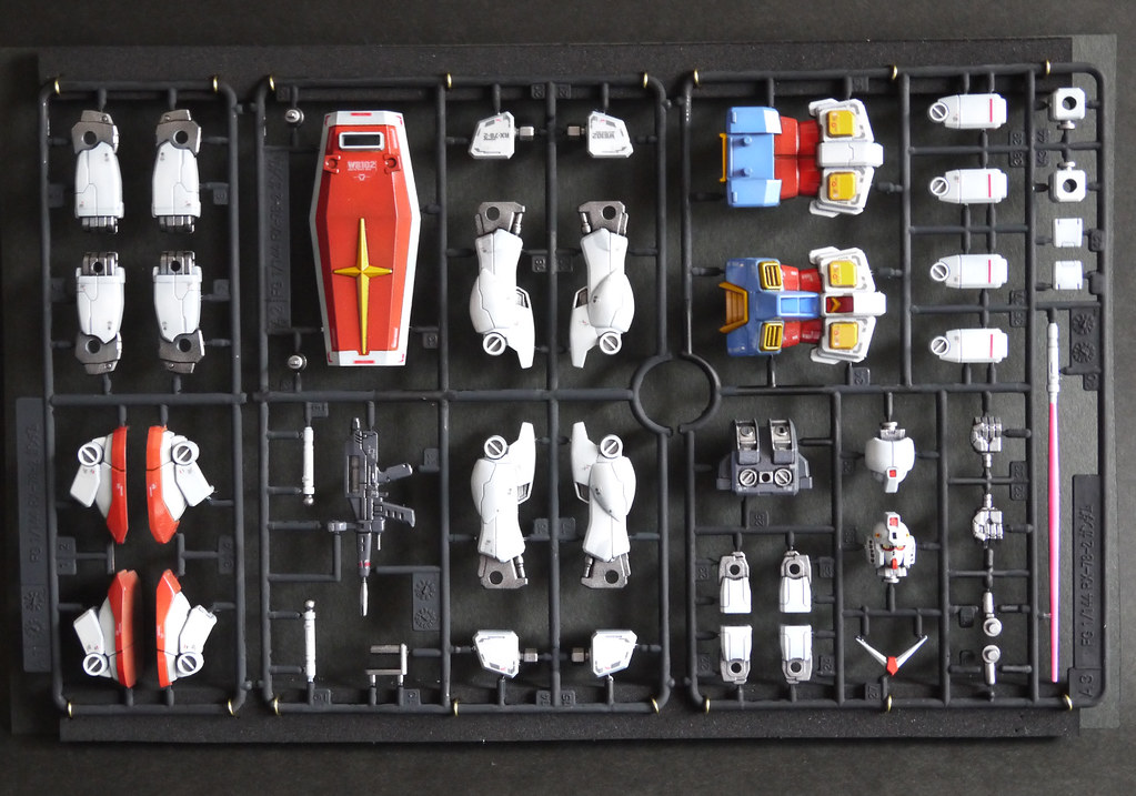 這個系列雖然大,但是組裝極為簡單,零件和膠框的連結點採用了剛才提到的楔形湯口,斷面很小,無須斜口剪,用拔的就可以直接拆下來。而組合零件則採用框架對組系統,一整片框架對折,面對面的零件直接組合起來就完成了。雖然尺寸比1/60 的PG 還大,但價格卻便宜許多,以RX-78-2 鋼彈為例,PG 系列定價1 萬日円,Mega Size 系列卻只要7800 円,相當的物超所值。