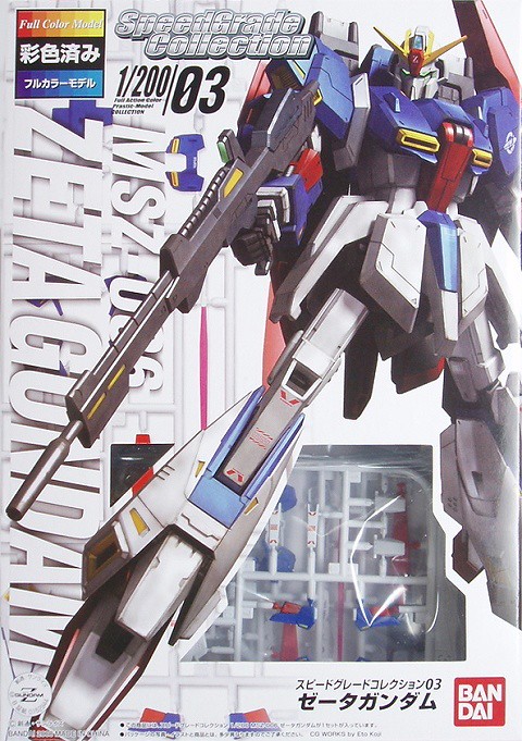 ▼ 2008 年3 月推出的1/200 Z 鋼彈,改採質感更好、容易保存的紙盒包裝,盒面特別採用了鏤空,可以透視裡面已經預先上色好的零件。尺寸雖小,但完成度非常高。