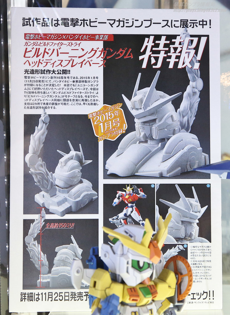 除了以上這麼多千奇百怪的鋼普拉系列之外,還有一個值得關注的系列,那就是鋼普拉與動漫模型雜誌聯名推出的特別版附錄,經常會有相當特別的作品,例如即將於《電擊HOBBY》2015 年1 月號推出的製作燃燒鋼彈頭像支架,這是一般通路買不到的。有興趣的朋友們不妨可以到時候留意一下噢~