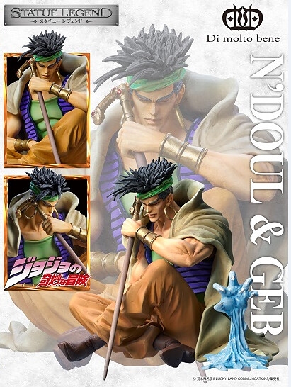 Di molto bene的招牌作品雕像傳說系列公佈第52彈「恩多爾與蓋布神」。恩多爾具有操控水的替身能力,但因為是盲;人,所以倚靠聽聲辨位發動攻擊。本作品把原作中的姿態與色彩傳神再現,某方面來說本作品的替身是繼皇帝以外最不費功夫製作的吧XD!