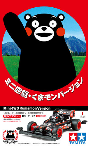 熊本熊(くまモン)相信大家對他都不陌生,誕生於2010年3月,原本為了宣傳當時即將通車的「新熊本站」所創的角色,後來熊本縣委任了這隻紅臉小黑熊為當地的吉祥物,但可愛的外型與呆呆的眼神讓人完全無法招架,現在熊本熊已經成為日本全國吉祥物的代表了!熊本熊四驅車資訊一公佈每天釋出250台共四天,每天250台的量在3分鐘內搶購一空,連女生都會忍不住敗下去啊!因為一推出供不應求最後田宮內部還是決定量產