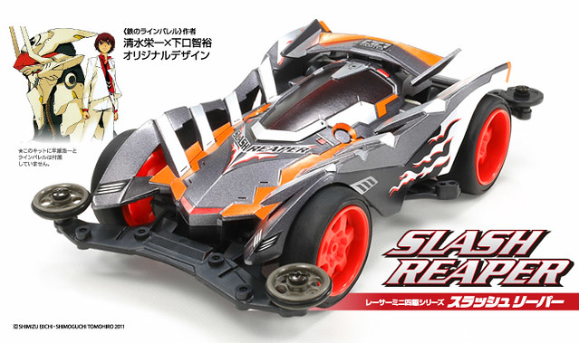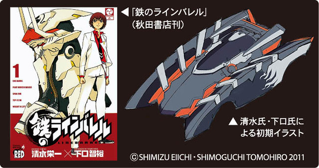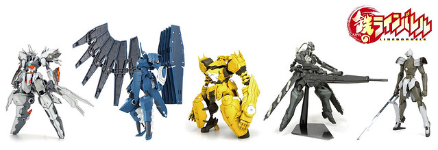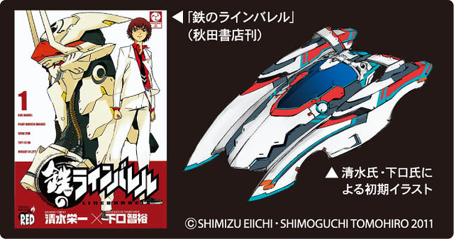 武裝機甲《鉄のラインバレル》裡登場的機器人是由清水榮一、下口智裕兩位老師所設計,那獨特的身形比例造就非常強烈的風格,與田宮團隊共同設計了兩款超帥車款