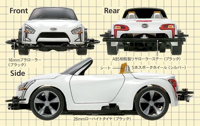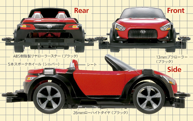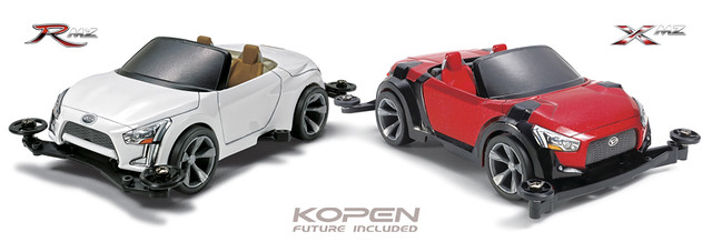 日本大發汽車(DAIHATUS)在2013年底釋出COPEN改版的概念車KOPEN,2014年初找上田宮合作首次發行模擬真車的四驅車,一次也釋出兩款車款RMZ/XMZ