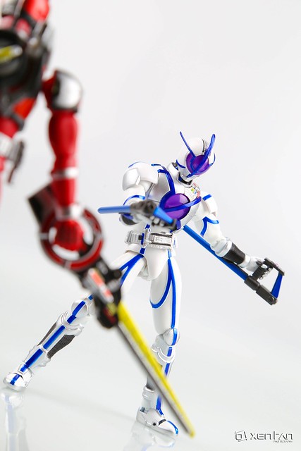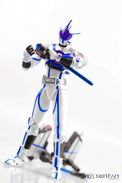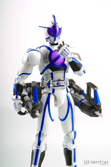 peter哥登場~~在劇中超帥的騎士造型!除了獨特的複眼~盔甲上的紫色也超精彩的!全白色的盔甲加上藍色的線條!讚!