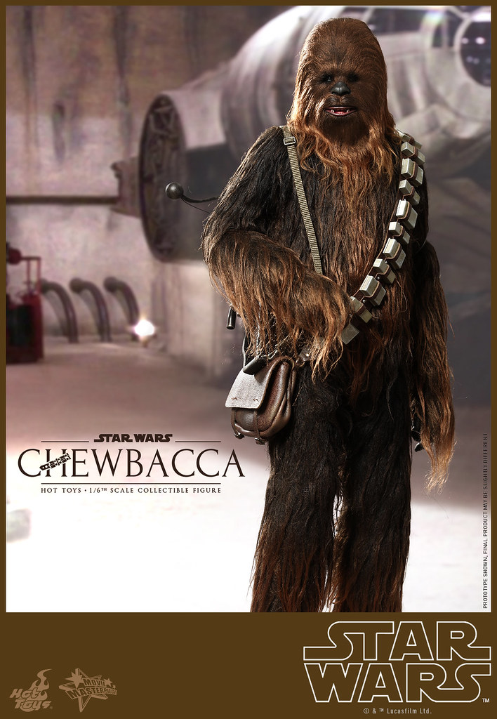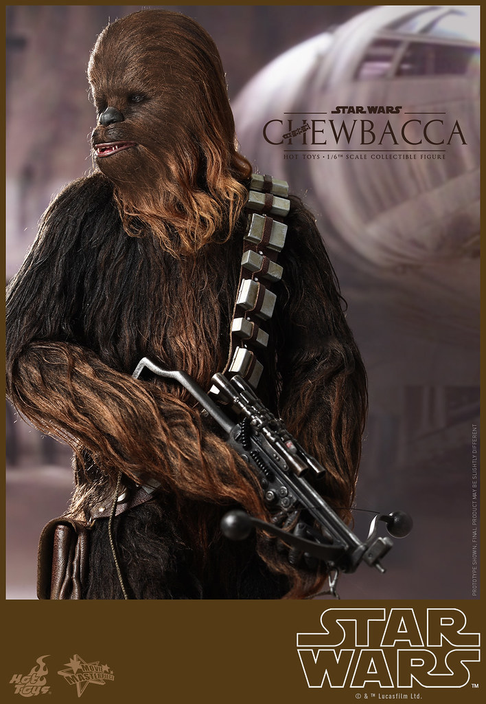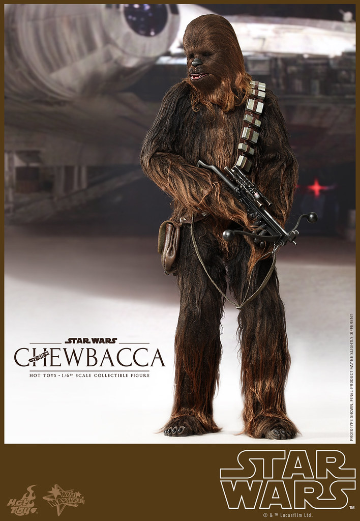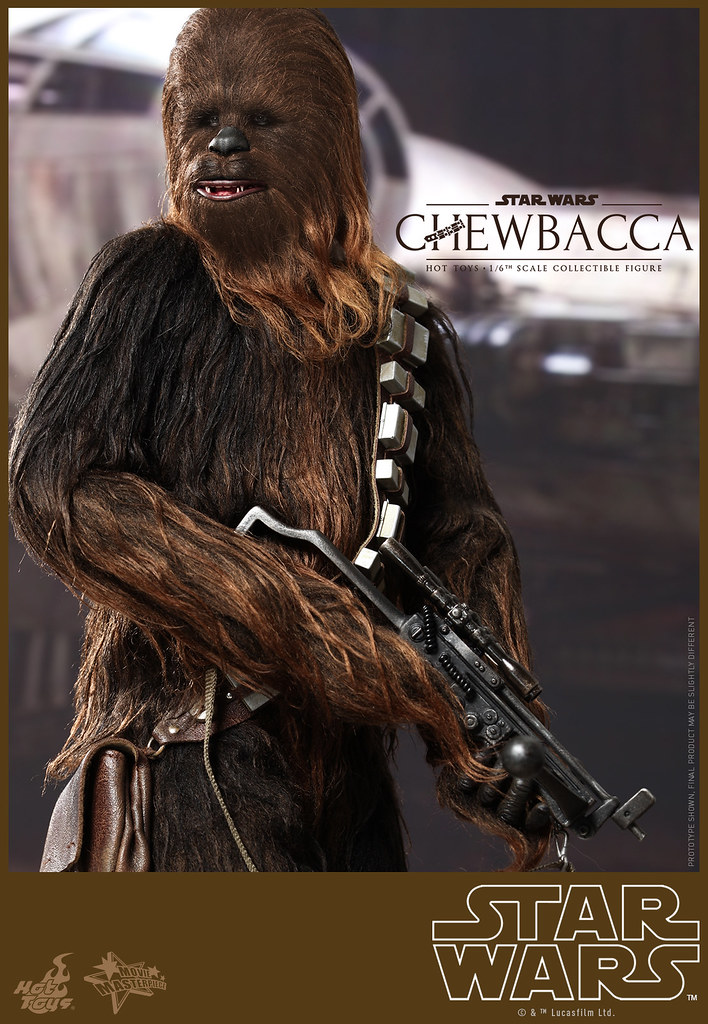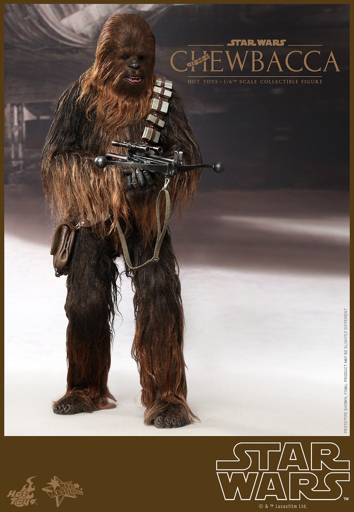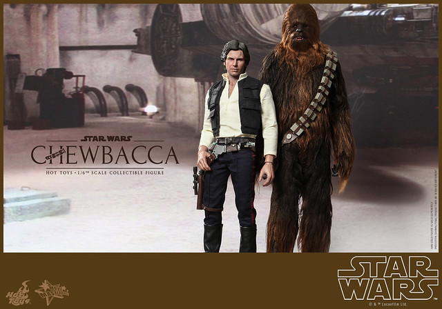Hot Toys 公司在推出了超帥氣的千年鷹號的頭頭「韓索羅」(Han Solo)1/6 人偶之後,怎麼會錯過了他最忠實的夥伴「邱巴卡」(Chewbacca)呢?!所以Hot Toys 公司也順勢推出了1/6 比例的「邱巴卡」(Chewbacca)人偶,由官圖可以看到這款作品完完全全將武技族的戰士造型表現出來,邱巴卡身上的毛髮顏色跟質感整個好到一個說不出話來!超像der。