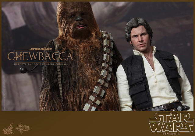 喜歡星際大戰的玩具人應該都知道,C3PO 跟R2-D2 是一對的,所以只要看到C3PO 一定會看到R2-D2 (誤~),而另外一對就是「韓索羅」(Han Solo)跟莉亞公主了(大誤~),不是啦!是駕駛著千年鷹號的兩個好夥伴「韓索羅」與「邱巴卡」!這次,Hot Toys 所推出的邱巴卡人偶也將其最擅長使用的十字弓武器呈現了出來,之後不知道會不會推出C3PO 被拆解的配件包呢?!期待啊!