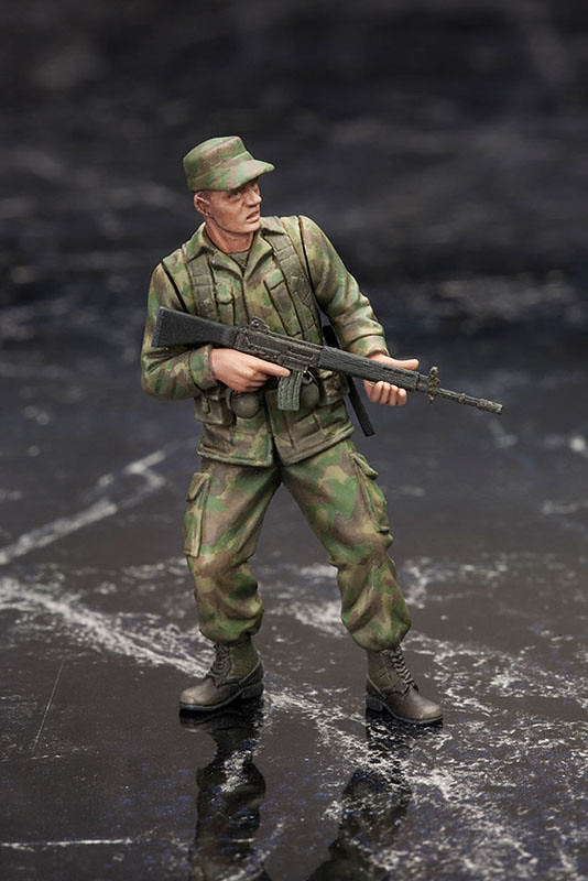 這一款《潛龍諜影5:原爆點》主題1/35 比例小兵,收錄了《潛龍諜影5:原爆點》主角SNAKE 站姿、奔跑以及潛行的三種經典姿態,除此之外還有反派、XOF首領「骷髏臉(Skull Face)」以及SNAKE 救出目標的童兵「奇可(Chico)」、兩種不同版本的海軍士兵,豐富精彩的內容絕對能夠還原《潛龍諜影5》的精彩世界觀!