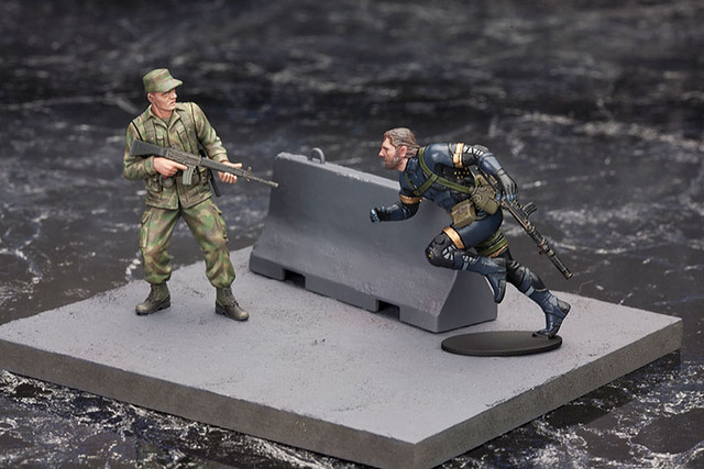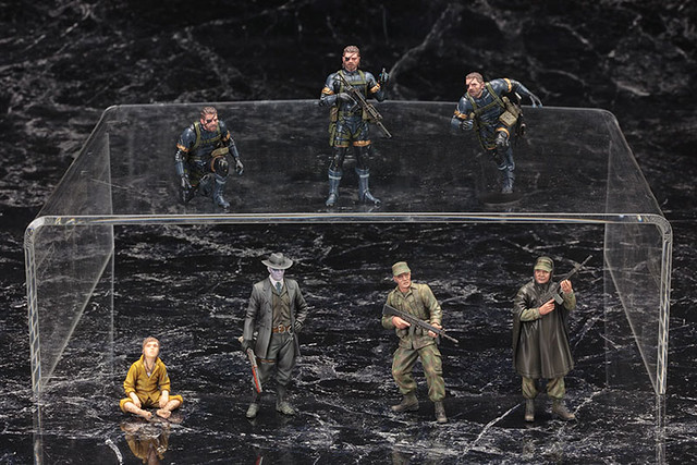 日本知名的玩具廠商「壽屋」藉此風潮推出了以《潛龍諜影5:原爆點》為主題的1/35 比例小兵,並利用組裝模型的優勢令其擁有更多複雜的姿態與精美造型。並搭配上戰爭、諜報為主題的《潛龍諜影》,只要收集了主角,也能輕鬆地在市面上找到一大堆能夠相對應的小兵或場景、模型,可說是相當迷人的精彩系列啊!~