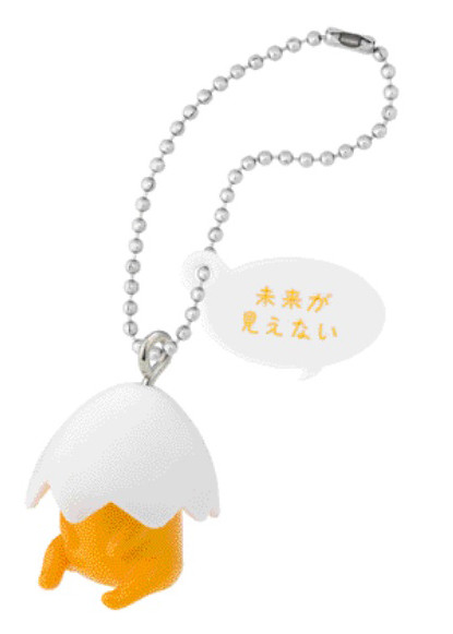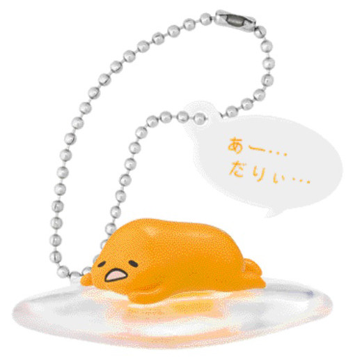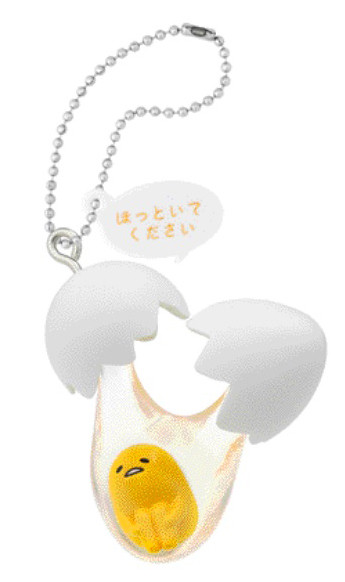三麗鷗「Sanrio 新食物角色選拔大賽」第二名、近來人氣狂升的的《蛋黃哥》(懶懶蛋/ぐでたま)首度立體吊飾化啦!~ 由TakaraTomy 所推出的這一款《蛋黃哥》立體吊飾,忠實地重現了各種《蛋黃哥》懶洋洋、毫無氣力的脫力模樣,將收錄了蛋黃哥A、蛋黃哥B、蛋黃哥C、溫泉蛋與水煮蛋一共5+1 隱藏,共6 種不同造型的經典的《蛋黃哥》!