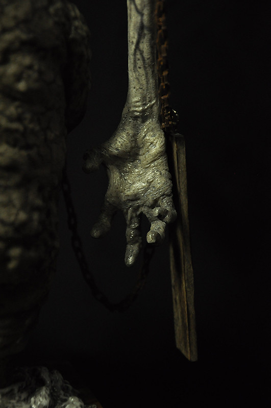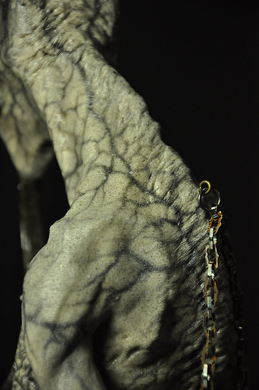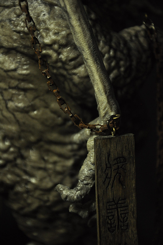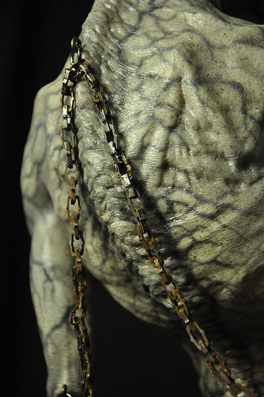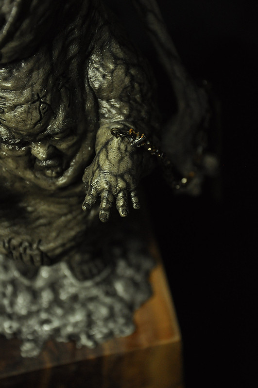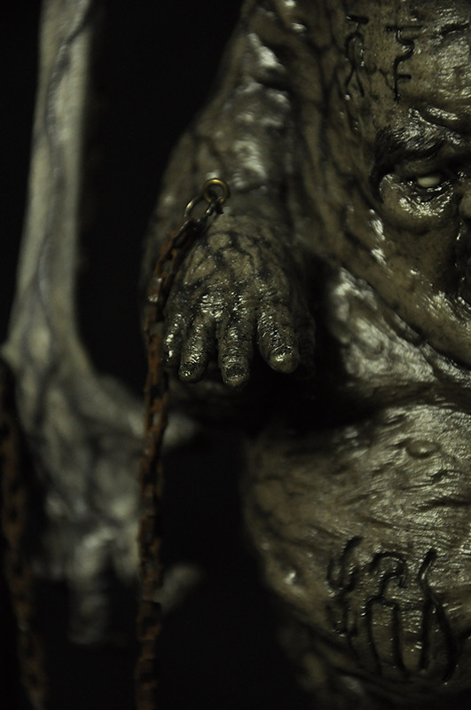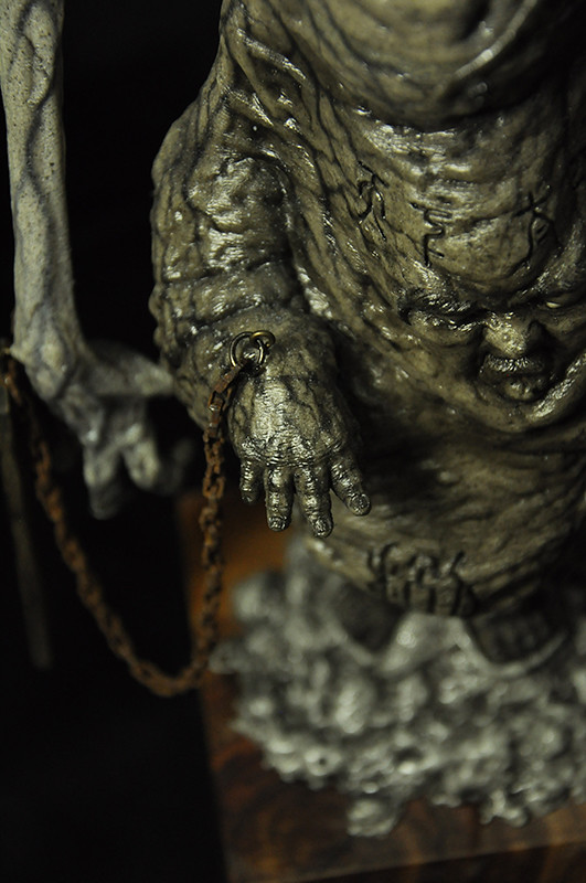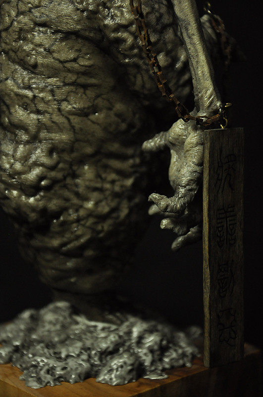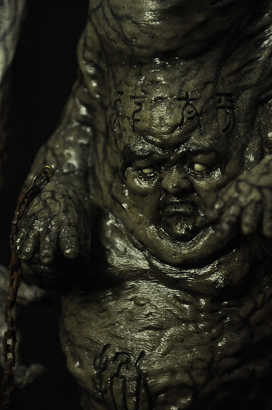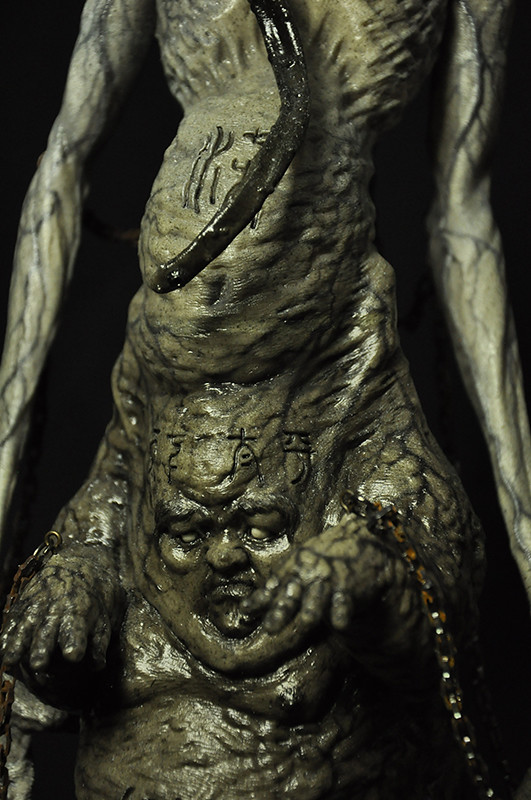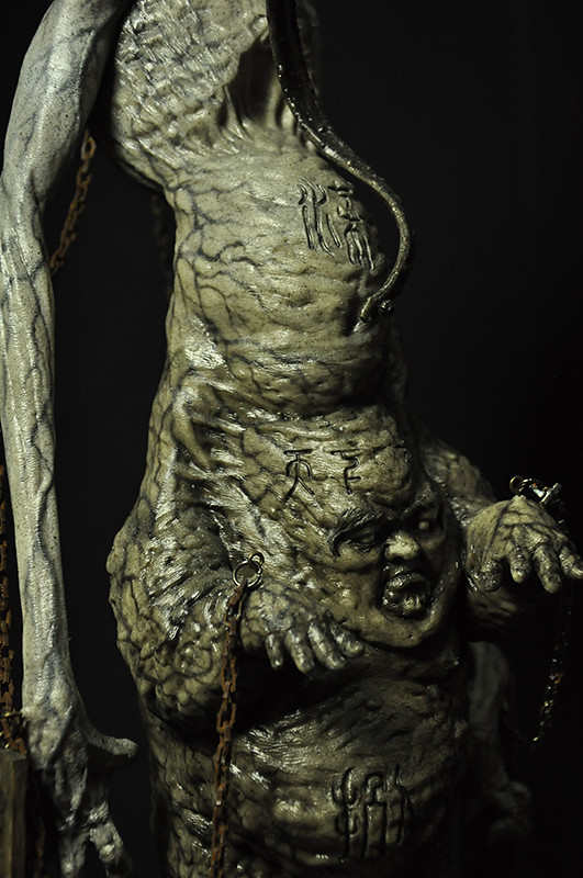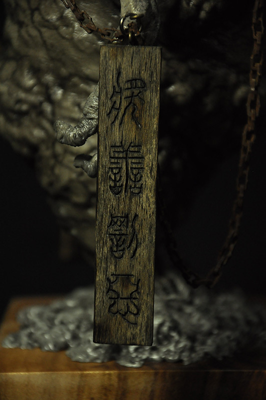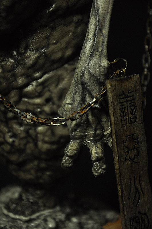 透過山姆這樣子的想法,整體的作品採用黑、灰、白三色作為主體的上色;腳踩地獄爛泥,代表著生命結束的部分,但地獄爛泥之下,山姆則採用了木紋明顯的台灣牛樟做為一個形容生命的起緣。換個角度想想,這其實就只是一個輪迴,這就是我們所熟稔生命的概念!這次「玖零零原型工作室」推出全新大作「黑白無常」作品,全球只有限定這一尊上色的版本,並與銀飾界的大師FAVEN 品牌銀飾一起合作,將黑白無常身上的鐵鍊打造的相當精美。全身上下都是有設計師手工刻畫與上色完成!花費的心力與時間已無法算的出來。由此可見此作品的珍貴程度。