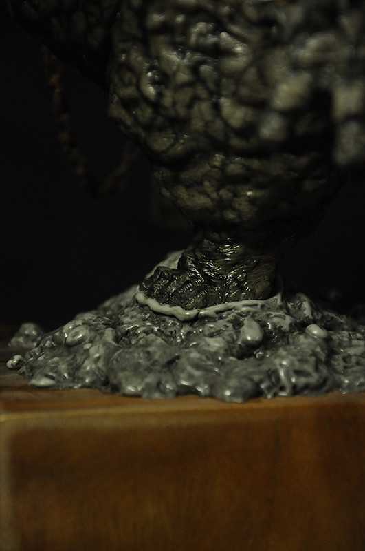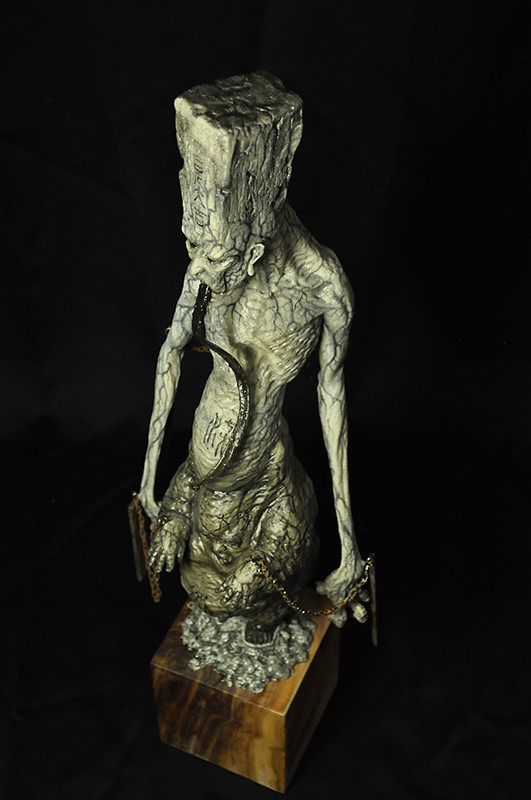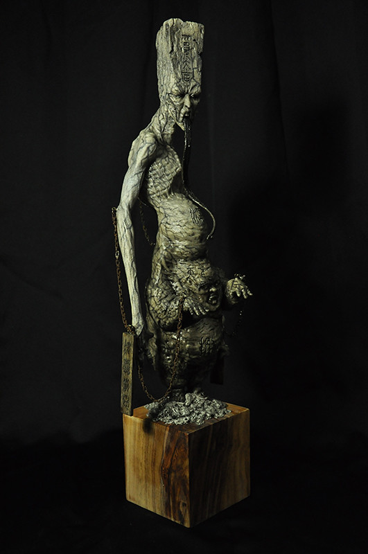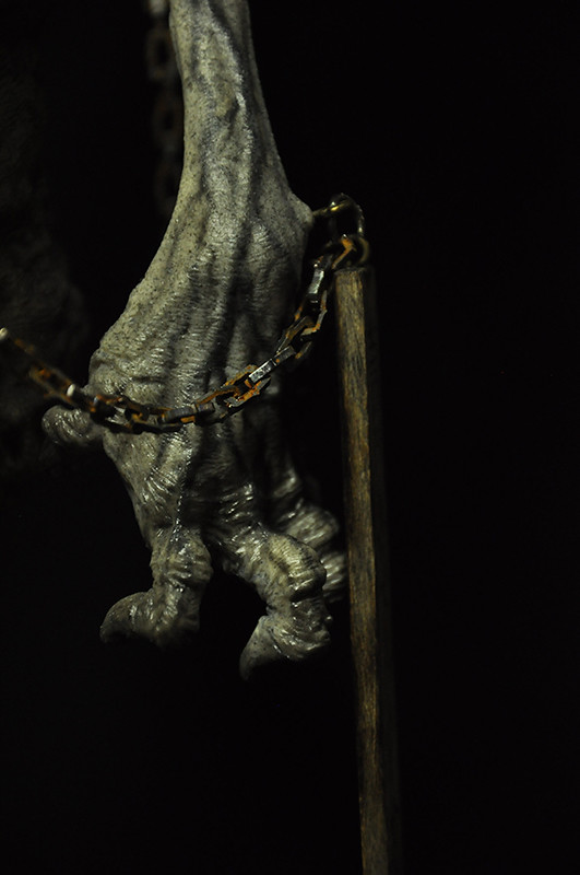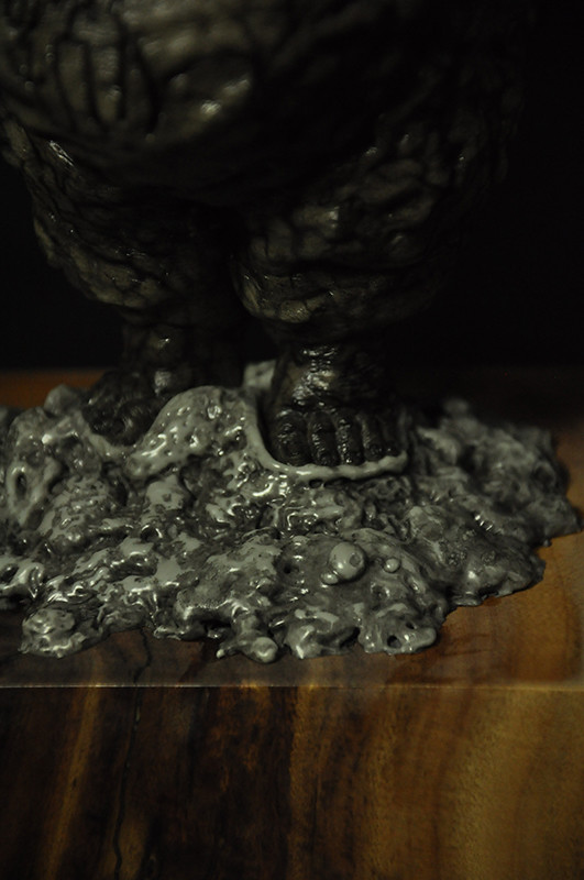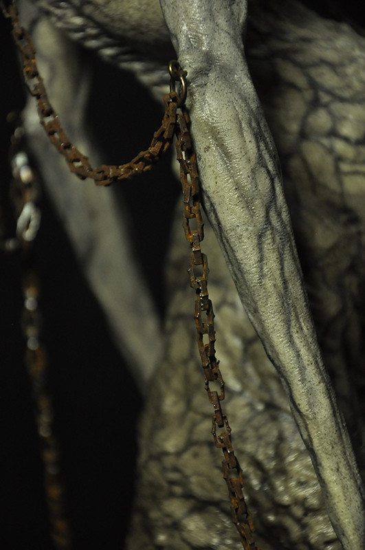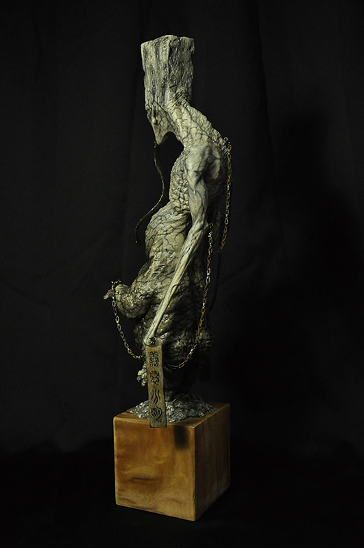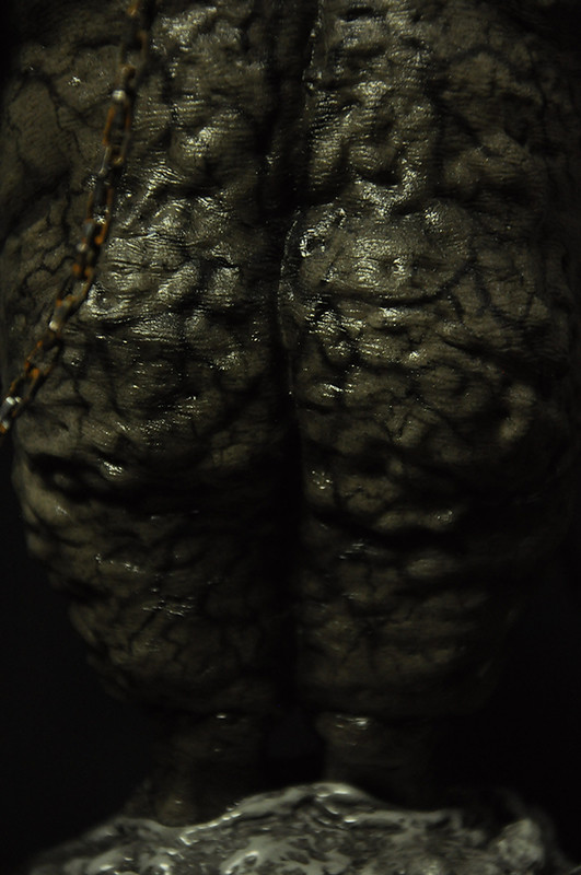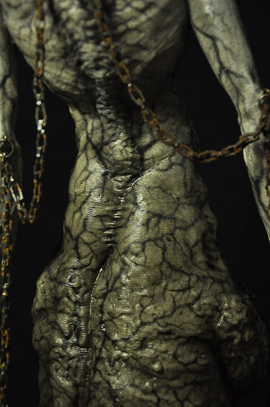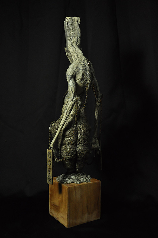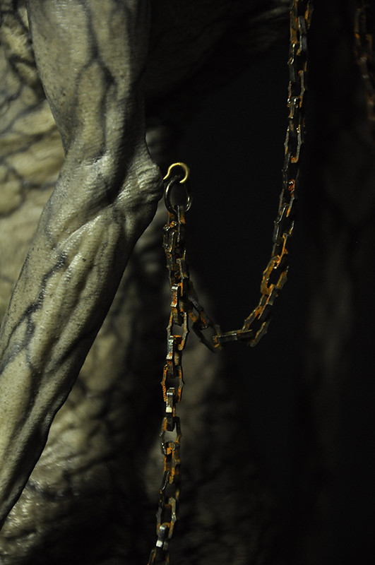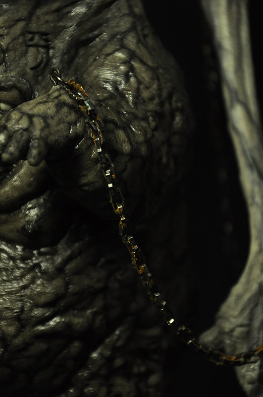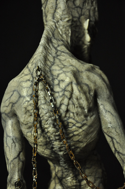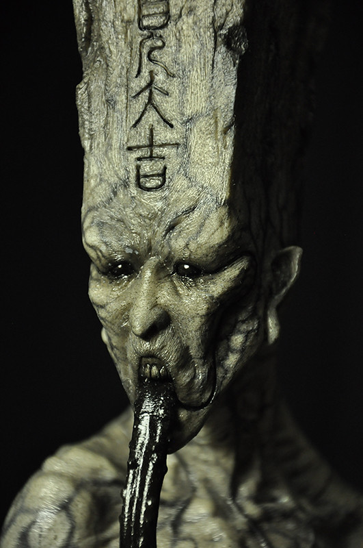 透過山姆這樣子的想法,整體的作品採用黑、灰、白三色作為主體的上色;腳踩地獄爛泥,代表著生命結束的部分,但地獄爛泥之下,山姆則採用了木紋明顯的台灣牛樟做為一個形容生命的起緣。換個角度想想,這其實就只是一個輪迴,這就是我們所熟稔生命的概念!這次「玖零零原型工作室」推出全新大作「黑白無常」作品,全球只有限定這一尊上色的版本,並與銀飾界的大師FAVEN 品牌銀飾一起合作,將黑白無常身上的鐵鍊打造的相當精美。全身上下都是有設計師手工刻畫與上色完成!花費的心力與時間已無法算的出來。由此可見此作品的珍貴程度。