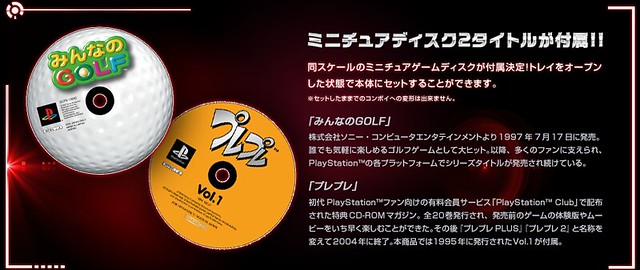 這一款作品將追加兩張遊戲光碟模型當作配件,分別是《全民高爾夫》(みんなのGOLF)以及日本PS玩家俱樂部“PlayStation CLUB”的會員光碟“プレプレ”,為這一款20週年紀念商品更加增添了紀念價值。