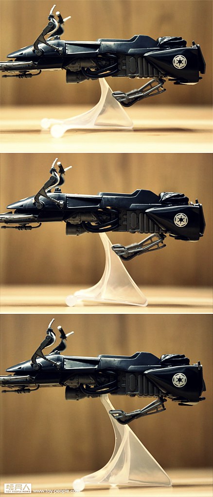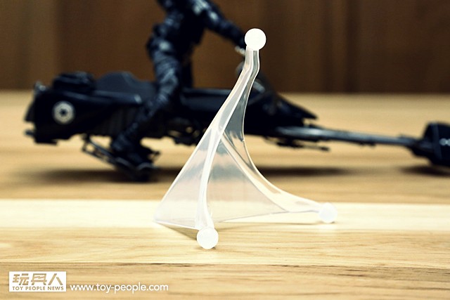 ▼ 這一款特殊設計的腳架,由於三邊長度不同,所以可以讓各位玩具人自行調整高度。除此之外,特殊的球狀關節讓無重力機車能夠自由傾斜,模擬各種飛行的姿態,相當棒的設計啊!~