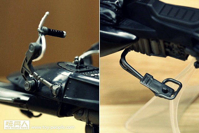 ▼ 除此之外,機車把手的刻畫也相當細緻。而腳踏板的部分則是貼心的製作了卡榫,能夠讓闇影帝國斥侯兵擺出騎乘姿勢時,牢靠的固定在上面。